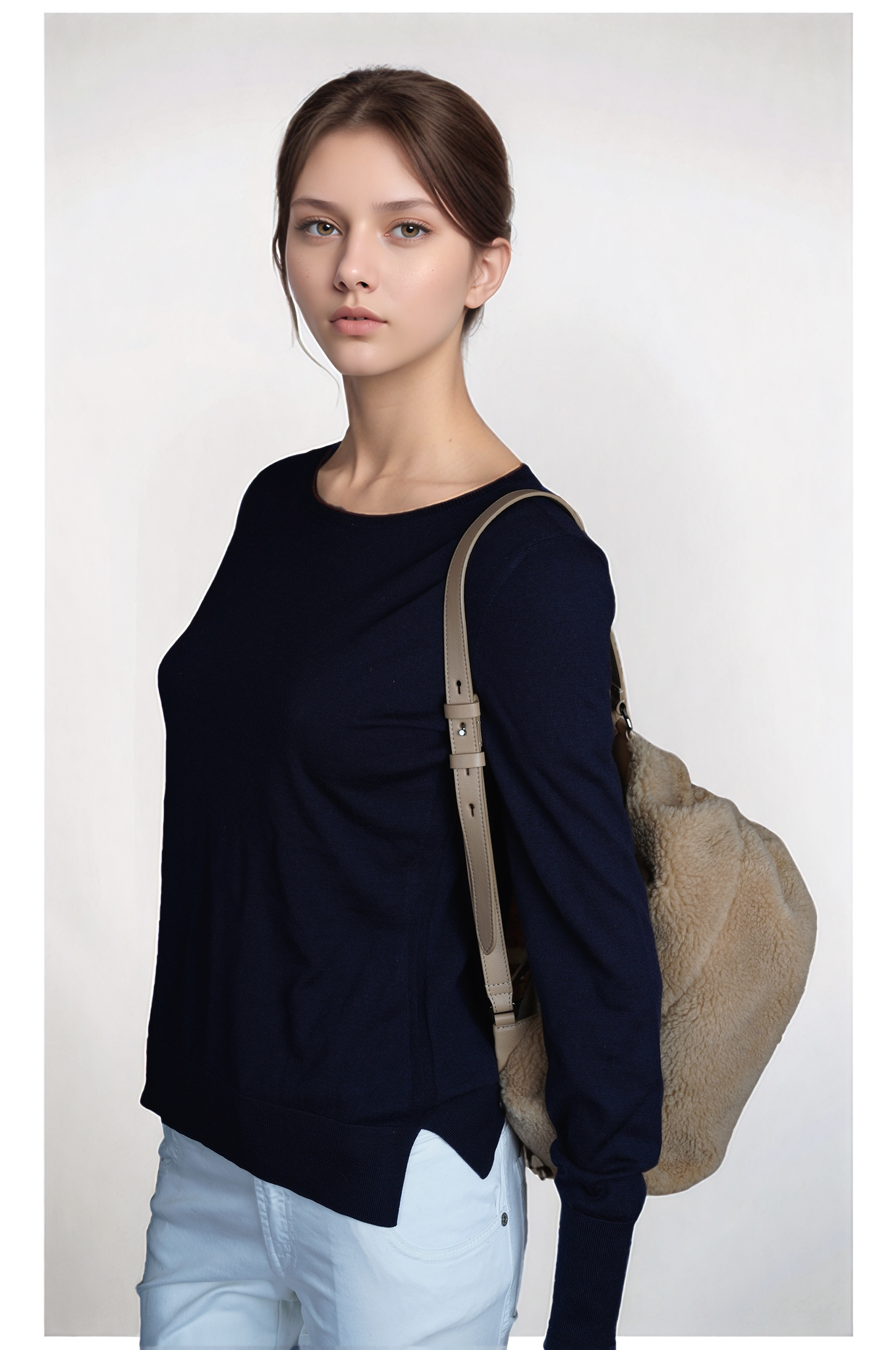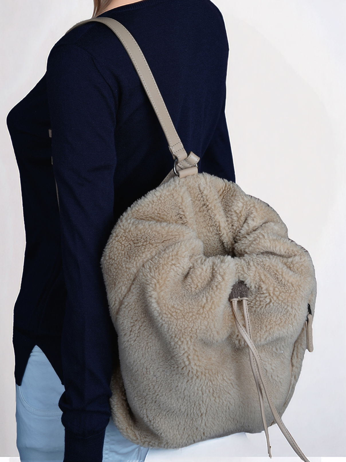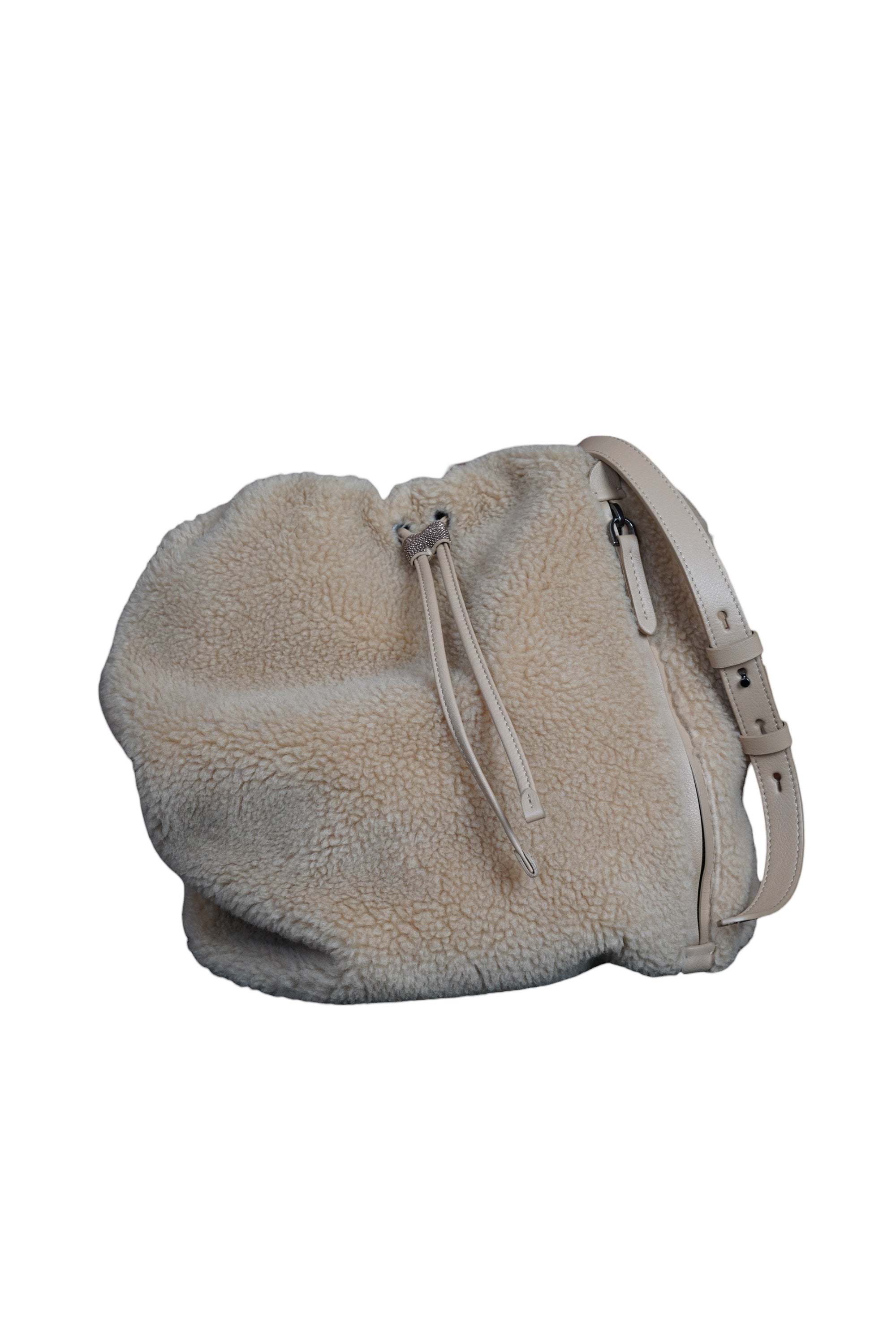 Brunello Cucinelli Umhängetasche Rucksack Shopper Handtasche Leder Shearling braun